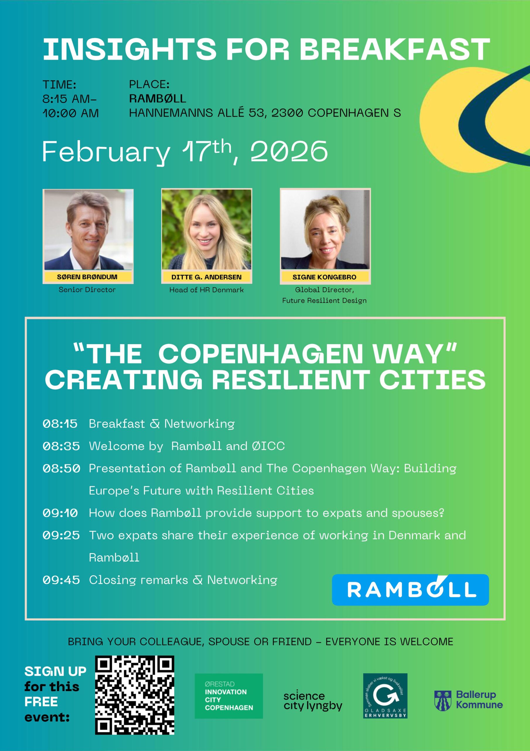 Get more knowledge on the Danish work environment and bring your spouse, friends or colleagues for a nice breakfast, insights and network.