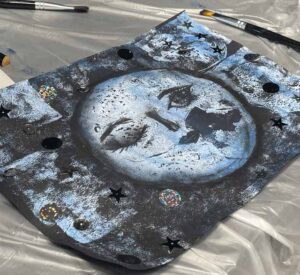 Efter de spændende oplæg, kastede pigerne sig ud i at skabe deres egne månebilleder, som kombinerede den videnskabelige rumforskning med kreativitet og hygge. Her fordybede pigerne sig i månens fascinerende udtryk, mens der blev spillet klassikere som ”Fly Me To the Moon” og andre af de utallige sange skrevet om månen.